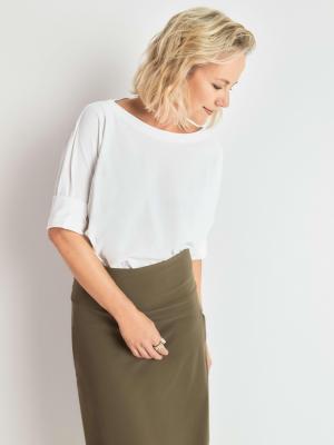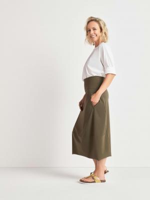 Die Besonderheit dieses Hightech Materials ist das Garn und der patientierte Strick. Dies macht unseren Functional Jersey aus Italien zu einem formbeständigen, bequemen und langlebigen Allrounder für unsere eleganten Röcke.